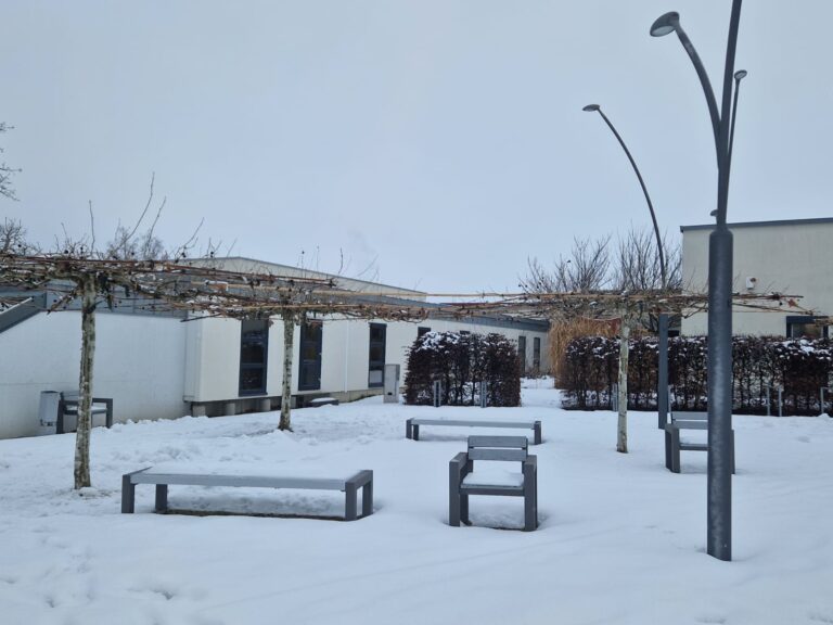 Noch ruhen die Platanen auf dem Vorplatz der Frankentherme im Schnee. Wegen Bauarbeiten werden sie jedoch schon bald ausgegraben und eingeschlagen. Für den kommenden Winter ist die Rückpflanzung geplant.